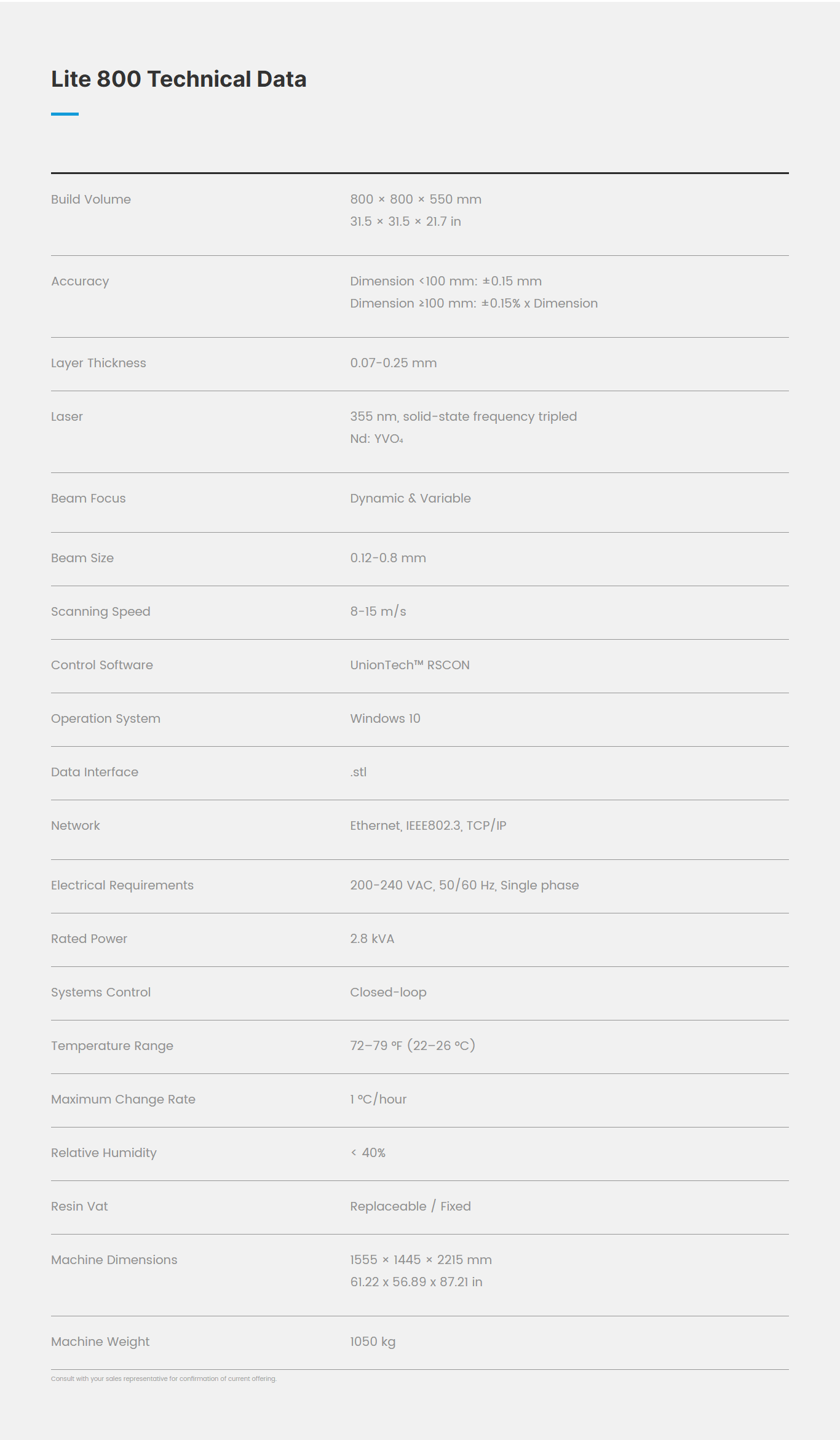 Works with a broad selection of SLA resins for diverse industrial applications.