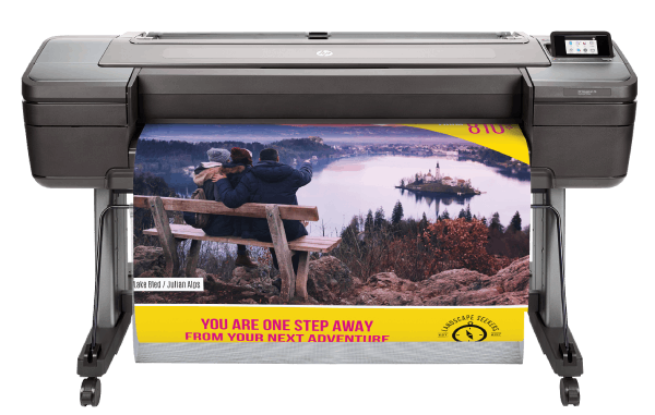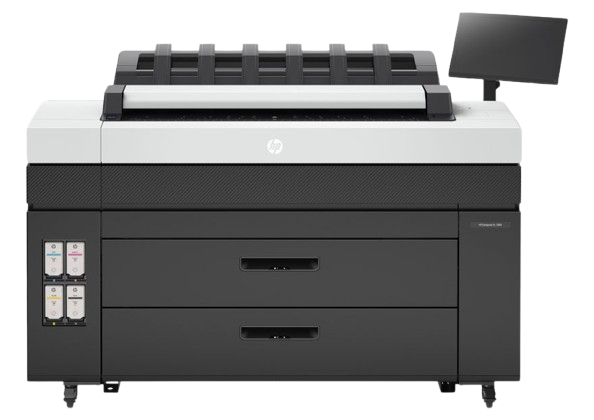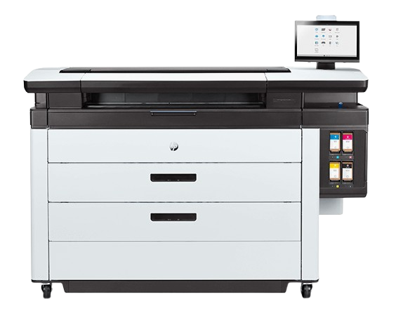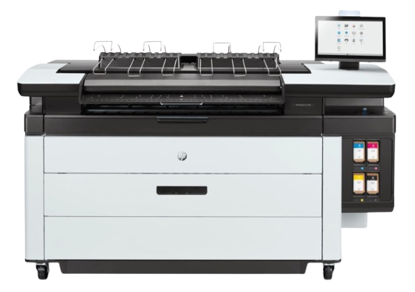 Up to 30 D/A1 pages/min | 5,300 ft²/hr | 15″ rotating touchscreen | Up to 6 rolls | 3L HP Eco-Carton ink supplies